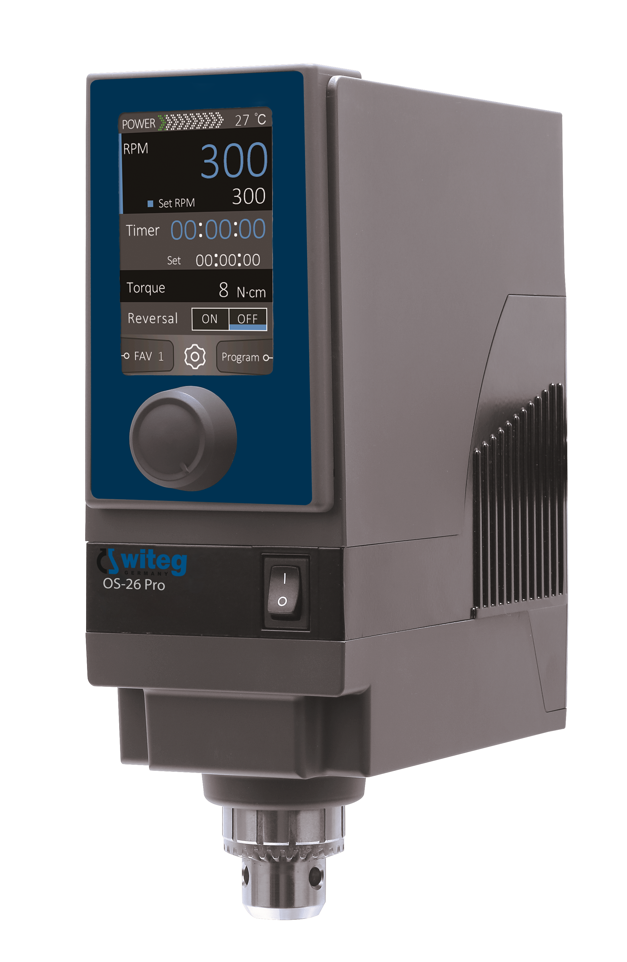 - sanftes Anlaufen und Ändern der Rührgeschwindigkeit während des Betriebs
